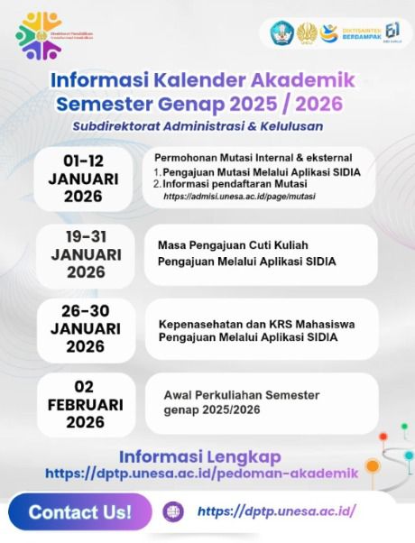 berikut adalah informasi kalender akademik 2025-2026 dapat diunduh pada link berikut ini: https://statik.unesa.ac.id/s2ppkn/file/0a01dcd9-a437-4655-a0cf-aa30ea4e9f87.jpg